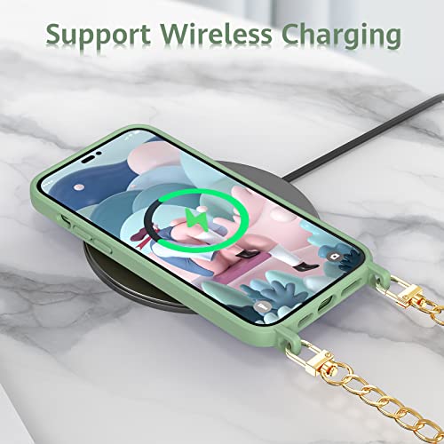 MATEPROX Custodie per iPhone 14 Pro Max Cover con 2 Tracolle a Catena in Metallo 7.9''/47.2'', Cute Donne Ragazze Custodia Protettiva Portatile Cover per iPhone 14 Pro Max 6.7" 2022-Menta verde