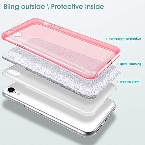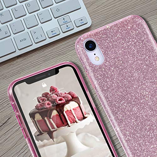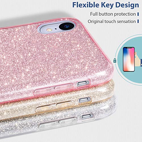 MATEPROX iPhone XR Custodia Trasparente Cover Ragazze Sottile e Sottile Lucida Glitter Scintillante Custodia per iPhone XR 6.1''(Rosa)