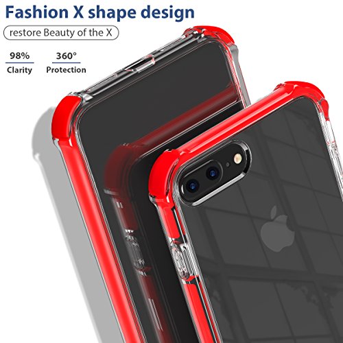 MATEPROX Shield Series - Custodia per iPhone 8 Plus, cover posteriore in policarbonato trasparente, in morbida gomma TPU, antigraffio, antiurto, per iPhone 7 Plus/8 Plus, colore: Rosso