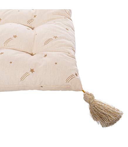 Atmosphera - Materassino da pavimento in cotone dorato stellato e nappe, 60 x 120 cm