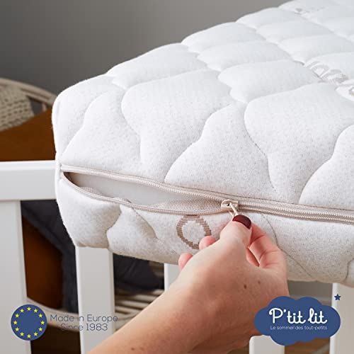 P'tit Lit - Materasso bambino Cotone Biologico - 70x140 cm - 100% Cotone: Materia naturale di origine vegetale - Senza trattamento chimico - Sfoderabile - OekoTex® - Fabbricazione europea