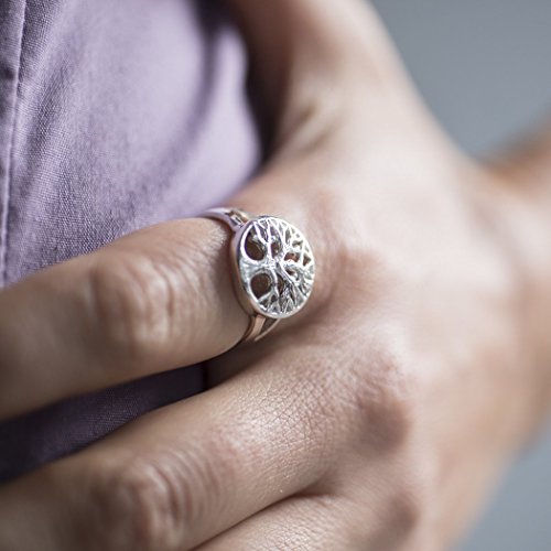 Anello Albero massiccio con design albero della vita in argento sterling 925. L'anello da donna in argento è disponibile in 5 diverse misure.