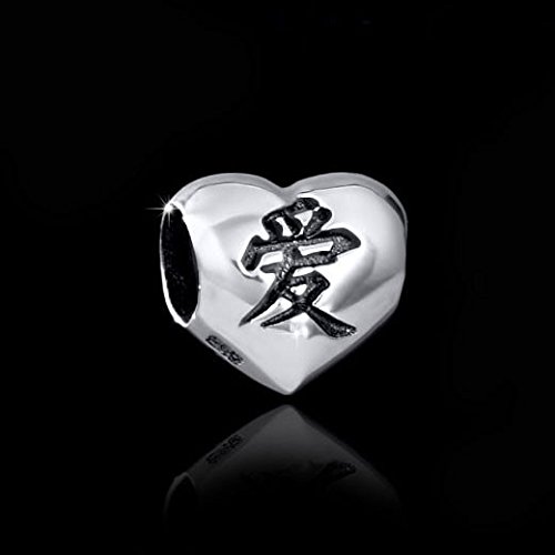 MATERIA 925 argento perline a forma di cuore con giapponese Kanji - Ai (giapponese per amore) - diamanti Element per Beads braccialetto #1506