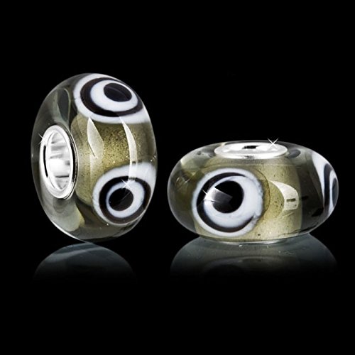 MATERIA Beads in vetro di Murano Nero e verde Element - 925 argento Murano vetro perline verde bianco cerchio con ornamenti #1148