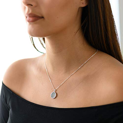 Materia Ciondolo in madreperla rotondo bianco - Ciondolo in argento 925 da donna con conchiglia, zirconi e catena in scatola portagioie. e Argento, colore: Con catena da 60 cm., cod. KA-456-Muschel