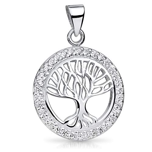 Ciondolo con albero della vita celtico in argento sterling 925 massiccio, di alta qualità. Il ciondolo è decorato con 34 zirconi scintillanti.