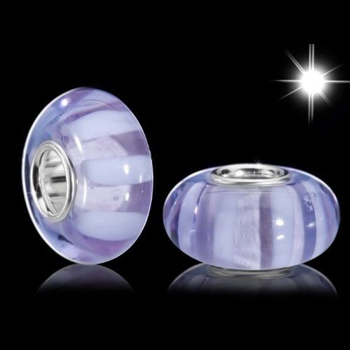 MATERIA in vetro di Murano perline viola - 925 Argento Sterling perline vetro Element in viola/lilla per European Beads braccialetto # 1273