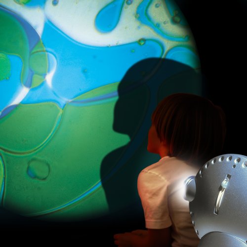 Proietta un'immagine in movimento su parete o soffitto, fino a 1,5 metri di diametro.