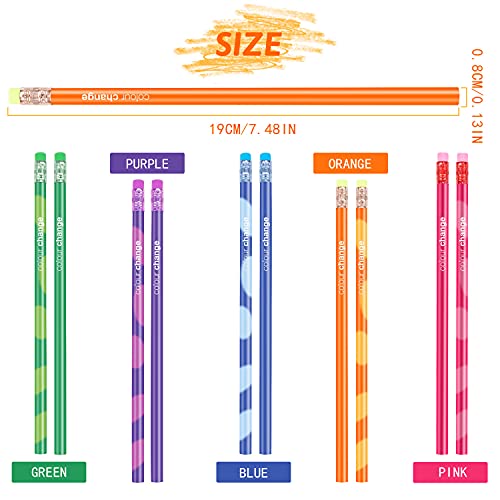 [Colori colorati]: riceverai 10 matite termiche con gomma, inclusi 5 colori. Quando la differenza di temperatura è abbastanza grande, il colore di queste matite magiche cambierà con il cambio di temperatura.