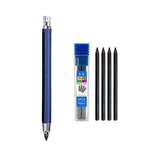 Matita da disegno in metallo da 5,6 mm con 4 mine 2B 4B 6B 8B set professionale arte schizzo matita meccanica Kawaii cancelleria può essere riempita (blu)