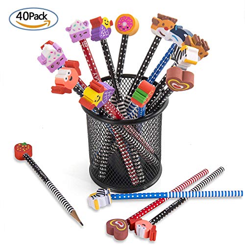 AVVISO: * Colori a matita casuali * Disegni della gomma casuali *. Lunghezza totale circa 18.5 cm. Larghezza gomma circa 2.5 cm. ** La gomma è staccabile. Confezione include 40 matite non temperate.