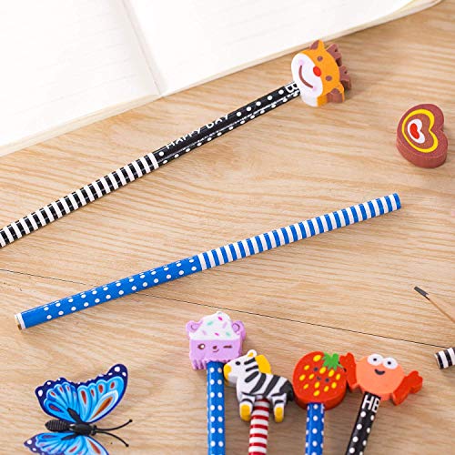 Insegnanti e genitori possono usarli come ricompense in classe o omaggi per bambini. Set matite e gomme divertente per bambini da utilizzare a scuola e rendere piacevole il lavoro di studio.