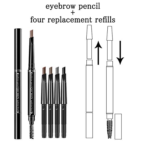 Design sostituibile e a doppia punta: 1 matita per sopracciglia include 5 testine sostituibili di colore. Colori diversi per soddisfare le vostre esigenze. Un pennello sull'altra testa della matita per sopracciglia, aiuta a pettinare le sopracciglia disordinate e rendere più facile il colore.