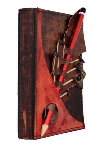 Matita Rossa Decorazione Titolare Marrone Annata Diario In Pelle Fatto A Mano Leather Taccuino Sketchbook Notepad Diario Quotidiano Agenda Tascabile Bloccare Donne Maschi Ragazze Ragazzi Ufficio Carta Comune