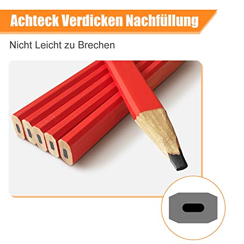 Marcatura chiara: questa matita con un morbido piombo distingue chiaramente la marcatura su legno e altri materiali da costruzione, il retro della matita è in scala. Questo disegno può migliorare la precisione del vostro lavoro significa "uno e due usi". Le matite utilizzano un nucleo di piombo di alta qualità, che non è facile da rompere e scrive in modo chiaro