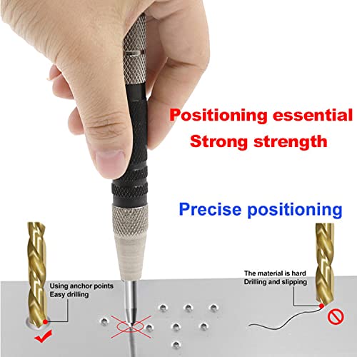 ✍ Pratico strumento di punzonatura centrale: Il punzone centrale automatico è realizzato con un corpo in acciaio cromato, ha un'elevata resistenza agli urti e all'usura;