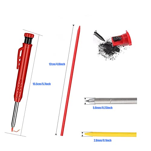 Matite Carpentiere Solide, 2 Pezzi Matite Falegname Set Marcatore Foro Profondo con 6 Ricariche, Matita Meccanica Matite Falegname Strumenti fai da te con Temperino Incorporato per Siti di Costruzione