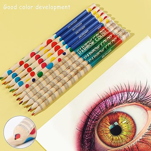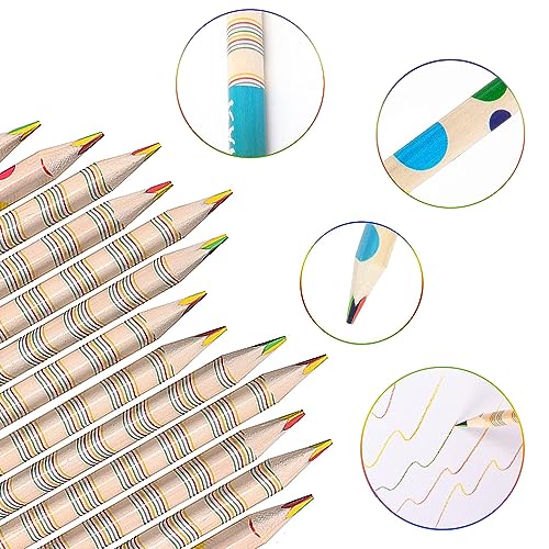 【4 in 1 color arcobaleno】 Il nucleo della matita è composto da quattro colori: rosso, giallo, blu e verde. La cosa più sorprendente di questa matita è che puoi girare la penna mentre disegni per ottenere colori diversi che vanno ben oltre la tua immaginazione e hanno curve e linee colorate. Ogni matita è pre-affilata e pronta per l'uso.