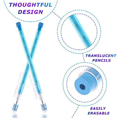 30 matite HB traslucide multipunto, impilabili, non affilabili, matite impilabili con gomma e mine di ricambio