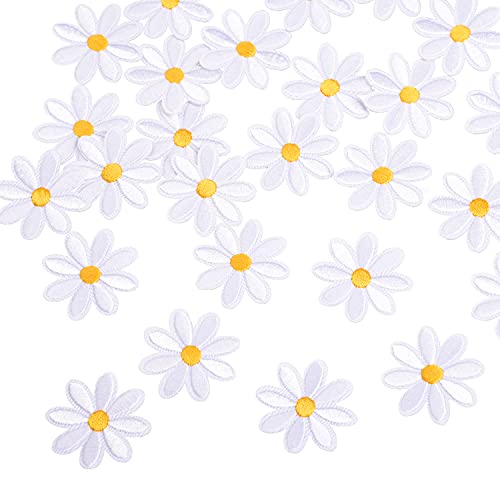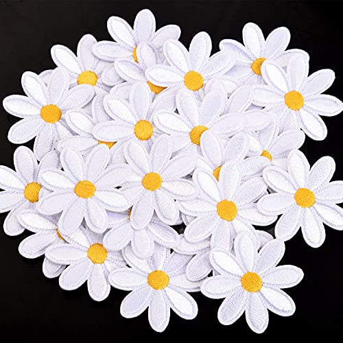 Matory - Toppa termoadesiva con motivo margherite bianche, con fiori e applicazioni ricamate per decorazioni, accessori, pantaloni, zaini, scarpe, borse (24)