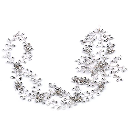 Matrimonio Fiori Fermagli Capelli,Strass Da Sposa Fronte Fasce Argento Colore Donne Copricapo Goccia D'acqua Testa Da Sposa Tiara Sposa Testa Pezzo Prom Festa Di Compleanno Accessori Per Capelli