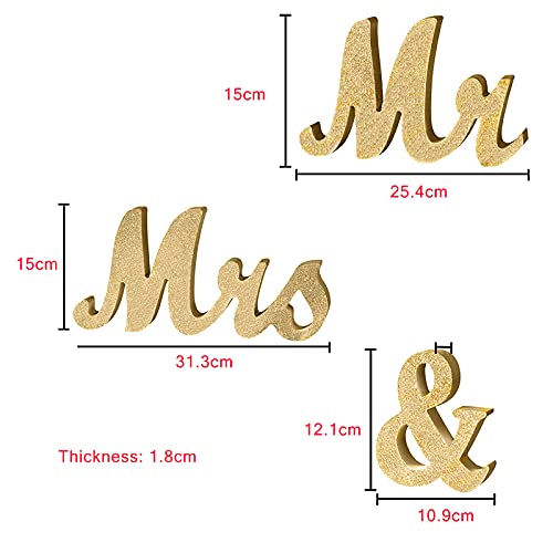 Mr & Mrs Matrimonio, Mr & Mrs Letters Legno Decorazione, Scritte in Legno Matrimonio, Legno Lettere Grandi per La Decorazione di Nozze Segno Superiore Tavola Presenti Décor, Oro Glitterato