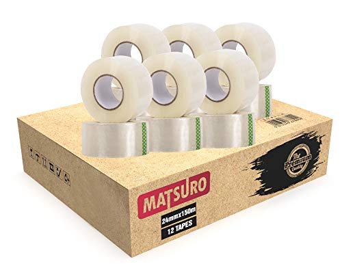 Matsuro Nastri Trasparenti, 48 x 150 m, resistenti rotoli di nastro per la casa, imballaggio, multiuso, uso regolare, sigilli e custodisce scatole e pacchi | Confezione da 12