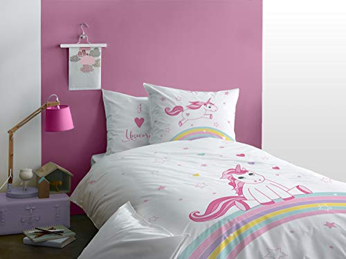 MATT & Rose - Copripiumino 140 x 200 cm + 1 federa, motivo: unicorno, 100% cotone 57 fili, edizione Limitee