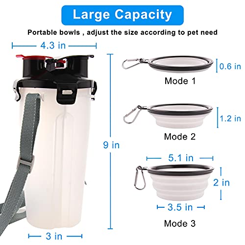 MATT SAGA Bottiglia d'acqua per cani con 2 ciotole pieghevoli portatile 2 in 1 bottiglia d'acqua e cibo per cani gatti animali da viaggio, bottiglia per camminare, esercizio, escursionismo, campeggio