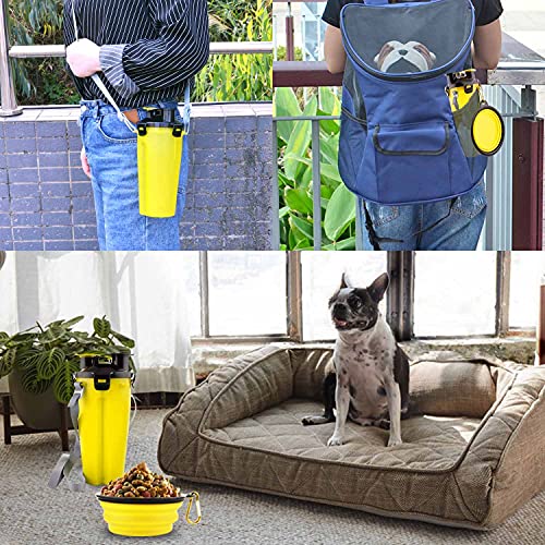 MATT SAGA Bottiglia d'Acqua e Cibo per Cane, Bottiglia Viaggio Portatile con 2 Pieghevole Ciotola per Passeggiare, Viaggio, Turismo A Piedi, Campeggio (Giallo)