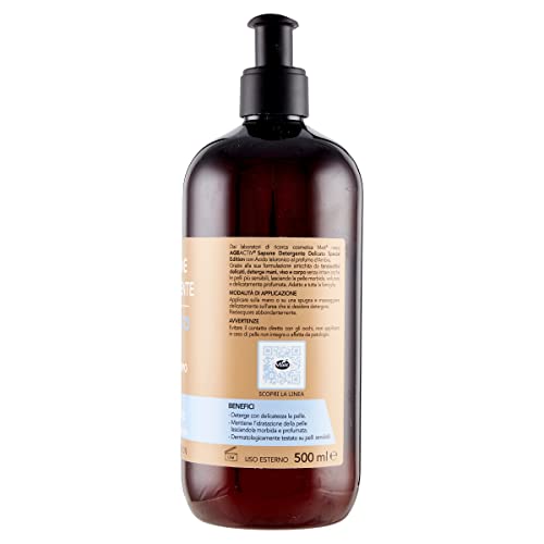 Sapone Detergente Delicato con Acido Ialuronico al profumo d'Ambra, adatto per tutta la famiglia. Formato 500 ml