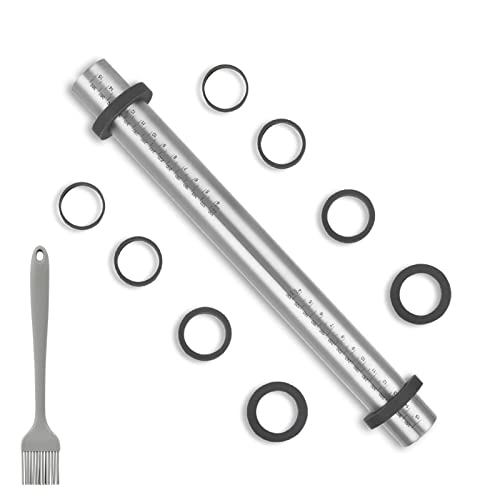 Mattarello in acciaio inox con 5 Dischi Regolabili Anello e marcatura, Antiaderente Acciaio Inossidabile Matterello in Metallo per fondente, Biscotti Pasticceria, Pasta, pizza 40cm