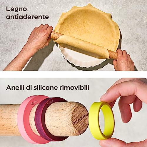 Mattarello con Anelli Regolabili per lo Spessore dell'Impasto - Set da 2 in Legno Certificato FSC - Per una Distribuzione Uniforme