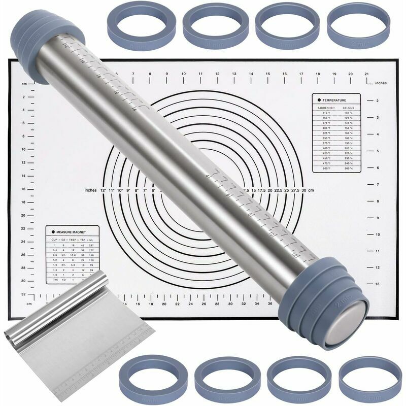 Set mattarello - Il miglior utensile da cucina Il nostro mattarello è realizzato in perfetto acciaio inossidabile 304, a differenza del normale mattarello in alluminio, il nostro mattarello non è facile da arrugginire e modellare. L'attività familiare insieme è il miglior accompagnamento per i bambini. Divertiti e diventa un insegnante di cucina per i tuoi bambini con il nostro set di mattarelli! 2 MM Ravioli, spaghetti 4 MM Deliziosi biscotti 6 MM Pane 8MM Pizza spessa Facile da pulire Impermeabile e pieghevole Non - bastone