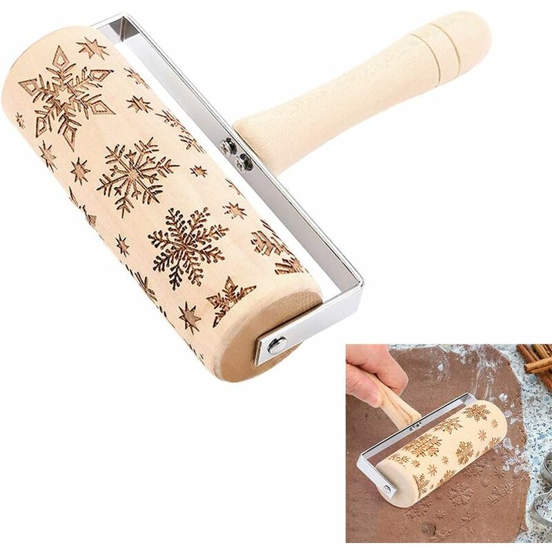 goffratore intagliato con vivaci disegni di fiocchi di neve di Natale che danno vita alla tua casa. i tuoi biscotti con una calda atmosfera festosa. commestibile: realizzato in legno duro durevole e resistente agli agenti atmosferici. umidità senza applicare vernice o cera, i nostri spiedini da forno sono sicuri, durevoli ed ecologici, il che li rende uno strumento perfetto per la cottura. da usare e da pulito: attrezzato con una maniglia, facile da da usare e da presa. Come un rullo pasta di legno, l'impasto non si attacca saldamente e puoi pulirlo facilmente e comodamente Ampia applicazione: strumento da cucina perfetto per cuocere, pane, biscotti, pasticceria, pizza, pasta, frittelle, fondente, cialde e molto altro. La pasticceria di Natale sarà un ottimo regalo di Natale per la famiglia o gli amici. Regalo ideale per Natale, Giorno del Ringraziamento, Festa