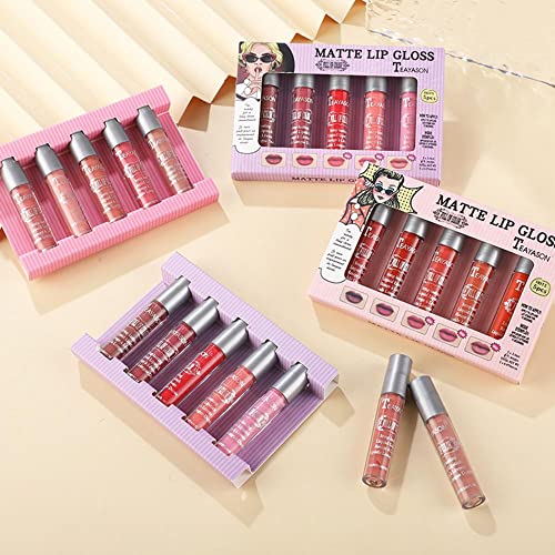 5 PCS Matte Velvety Lipstick set Waterproof Long Lasting Durable Lip Gloss Kit Beauty Cosmetics Makeup Set (Big red)