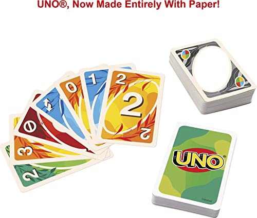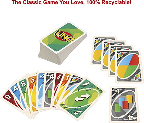 Mattel Games UNO Versione Eco-Sostenibile, Gioco di Carte in Materiale 100% Reciclabile, Regalo 7+Anni, GTH23, multicolore
