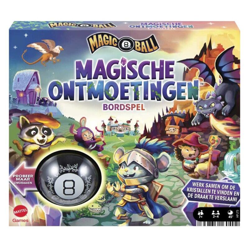 MattelMagic 8 Ball Magical Encounters Il gioco da tavolo Magic 8 Ball Magical Encounters espande il misterioso giocattolo classico e introduce un nuovo modo di giocare con esso. Da 2 a 4 giocatori lavorano insieme per trovare cristalli e salvare il regno dal drago fare delle scelte, ma alla fine è la Magic 8 Ball a fare la scelta per loro. Otterranno un vantaggio insieme o periranno insieme? Questo gioco da tavolo cooperativo incoraggia il lavoro di squadra attraverso un'esperienza narrativa estremamente ricca. Sia i bambini che gli adulti adoreranno questo gioco di strategia facile da imparare in cui incontrano creature magiche. Questo gioco da tavolo di strategia è un regalo perfetto per ogni serata di gioco 4 giocatori da 7 anni