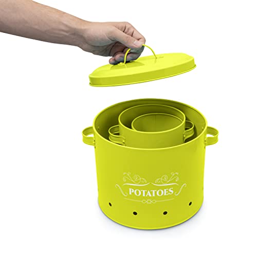 MatthewJames Elegante contenitore per patate cipolle, aglio - Set di 3 barattoli per frutta e verdura, in acciaio inox di alta qualità, organizer da cucina in calce calda
