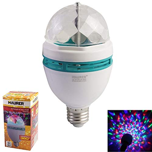 MAURER 5490080 Bombilla Led Disco Rotativa E27 3W. 270 lumenes. Color: Rojo, Verde y Azul