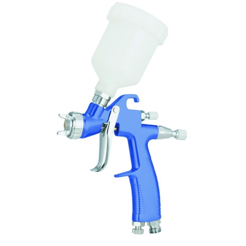 Con serbatoio superiore mod. 95722Ideale per ritocchi e graficaPressione dell'aria richiesta 3,5-5 kg/cmqConsumo d'aria 100-170 lt./minDimensione del getto a ventaglio 80-150 mm.Capienza del serbatoio in plastica 200 cc.Materiali utilizzabili vernici e smalti monocomponente, tinte liquide, materiali doppio strato, tinte pastello, vernici a base d'acqua UGELLO D.MM. 1
