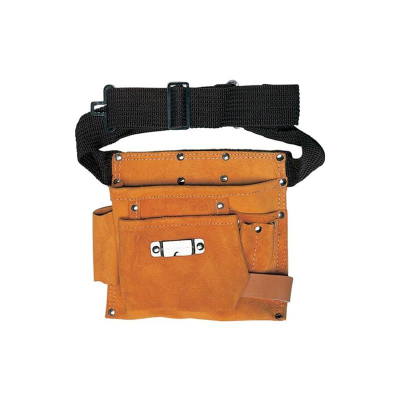 2 tasche (1 larga + 1 media) - 2 asole (martello + portatenaglia) - Cinghia regolabile - Scomparti: 2+2