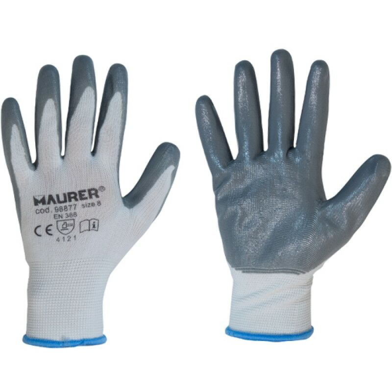 GUANTI LAVORO NITRILE GRIGIO "GLOVEX" TG.10" MAURER - CF. CAVALI Taglia: 10" Tipo: Polsino Fodera: Filato in poliestere senza cuciture colore bianco - Rivestimento: Spalmatura in nitrile colore grigio - Ideale per operazioni di produzione ed assemblaggio che necessitano di protezione da tagli, abrasione e perforazione, carrozzerie ed autofficine, assemblaggi generali di parti oleose - Norme CE EN 388 4121 - Cf. cavaliere