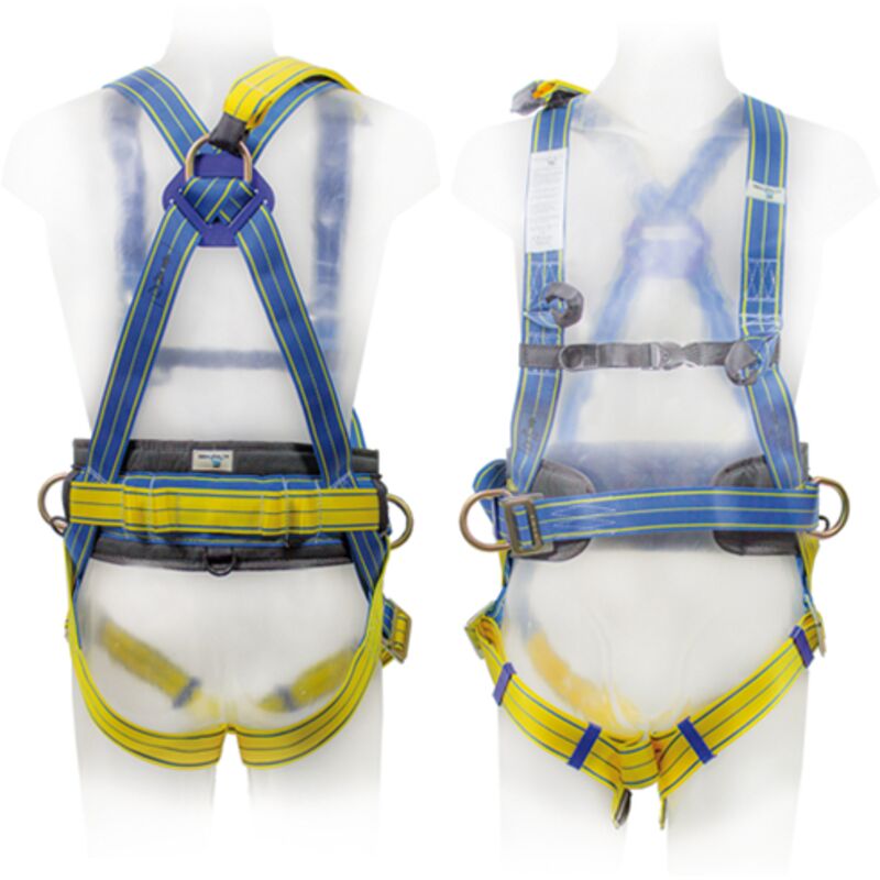 Imbracatura anticaduta con attacchi dorsale e sternale e fascia sottoglutei piu' cintura di posizionamento - Regolazione sui cosciali, taglia unica regolabile - Cinghia di regolazione della larghezza fino a 150 cm. con 2 reggiutensili - Cintura di sposizionamento - Due anelli a D laterali - Norme 0426 EN 358 EN 361 - Conf. in busta Confezione: 1 PZ Taglia Unica regolabile