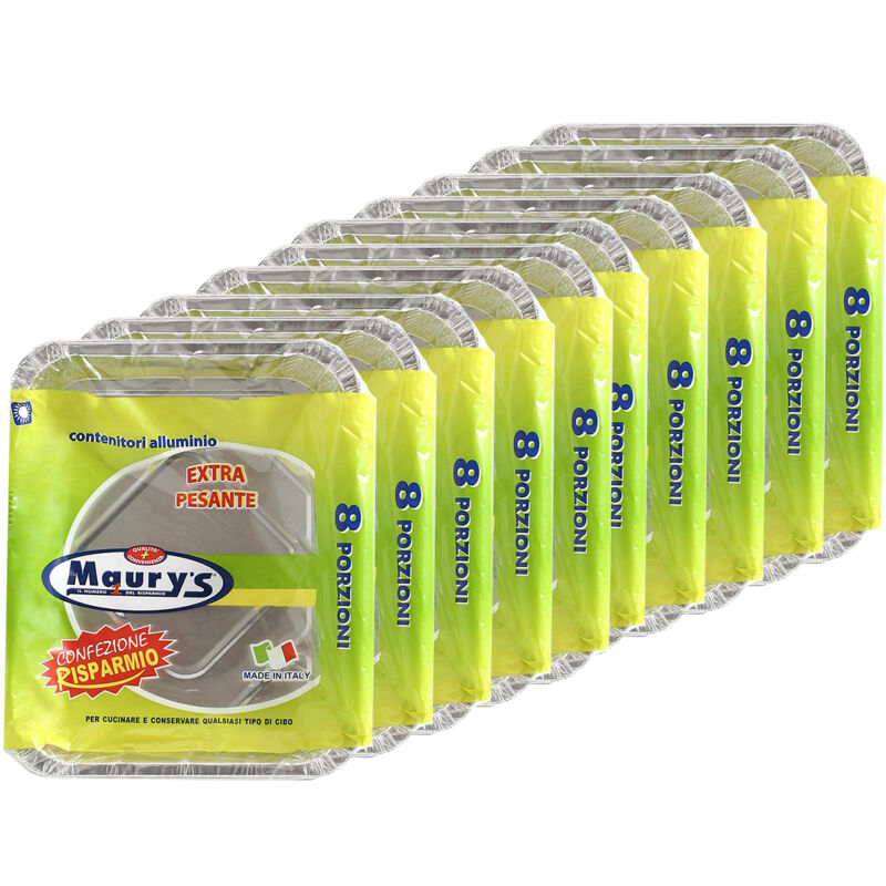 Le Vaschette Maury's per alimenti in alluminio a doppia forza sono realizzate in alluminio a spessore maggiorato per offrirti un'elevata resistenza e tenuta. Ti permettono di ottenere una cottura ottimale. più veloce e omogenea. poiché l'alluminio è un ottimo conduttore di calore. Pratiche e versatili. sono indicate per la conservazione dei tuoi cibi. per la cottura e il riscaldamento nel forno o come piatti da portata per servire a tavola. Maury's set da 10 confezioni di contenitori per alimenti Materiale: Alluminio Formato: Rettangolare Porzioni: 8 Dimensioni: 32 x 27 cm