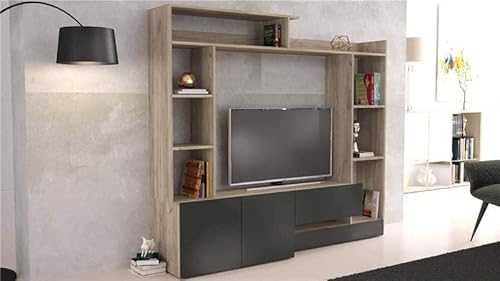 MAURY'S IL NUMERO UNO DEL RISPARMIO PARETE SOGGIORNO ENTRY 180 X 28/40 X H165 CM (Antracite e Olmo)