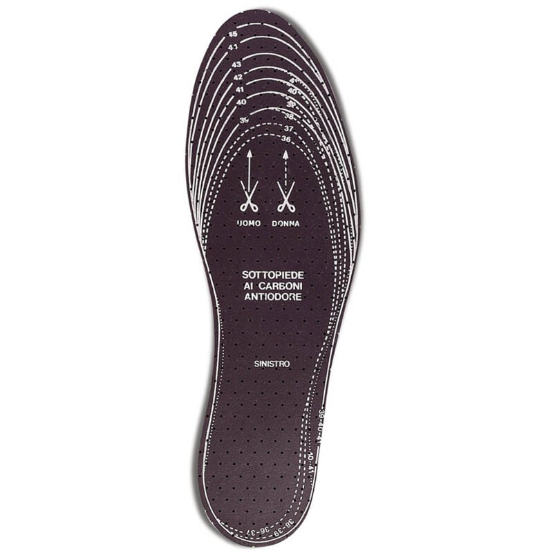 MAURYS SOLETTA PER SCARPA AI CARBONI ANTIODORE 2 PAIA Sottopiede universale Colore: nero Tecnologia ai carboni attivi antiodore Contiene 2 paia La soletta Maury's si adatta ad ogni tipo di piede: basta tagliare secondo la riga corrispondente. per rendere il sottopiede adatto alle nostre misure.