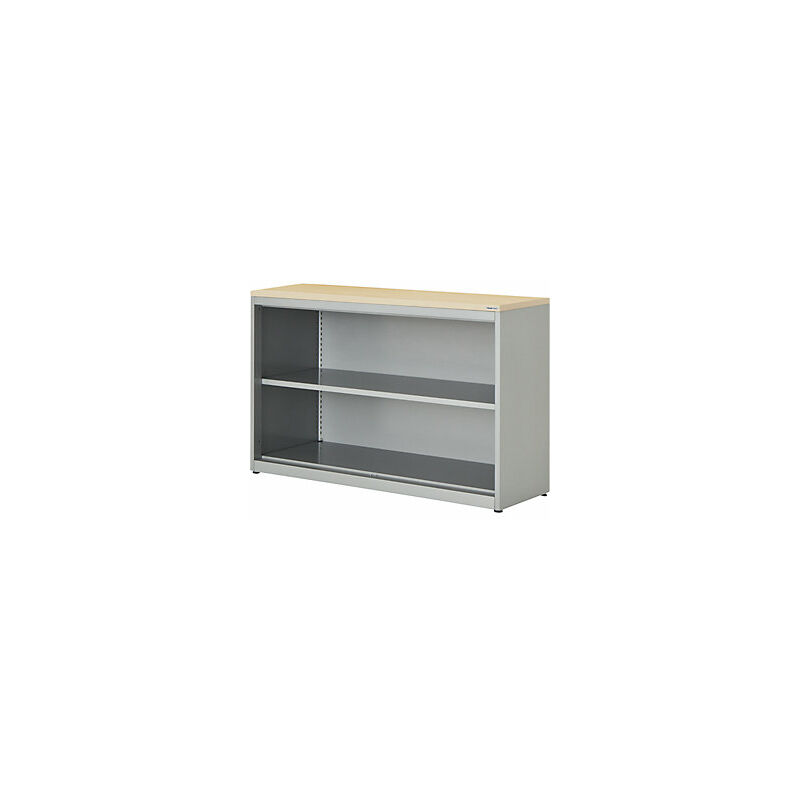 Scaffale combinato, alt. x largh. x prof. 830 x 1200 x 432 mm, pannello in plastica, 1 ripiano, color alluminio / acero. Fornitura = montato. Altezza = 830 mm. Larghezza = 1200 mm. Profondità = 432 mm. Colore corpo = alluminio brillante RAL 9006. Tipo di prodotto = scaffali per ufficio. Numero ripiani = 1 pz. Materiale ripiani = acciaio, verniciato a polvere. Colore ripiani = alluminio brillante RAL 9006. Portata per ripiano = 66 kg. Numero file raccoglitori = 2 pz. Larghezza piano = 1201 mm. Profondità piano = 435 mm. Spessore piano = 25 mm. Tipo di piano = plastica. Colore piano = simil-acero. La variante aperta, vantaggiosa e attraente. Per una visione d'insieme completa ed elegante. Corpo: robusto corpo in acciaio saldato, verniciato a polvere. Di serie con piedini a vite per la messa in piano. Pannello di copertura verniciato in resina melamminica dello spessore di 25 mm con bordino in ABS. Allestimento: 1 ripiano in acciaio dello stesso colore del corpo per 2 file di