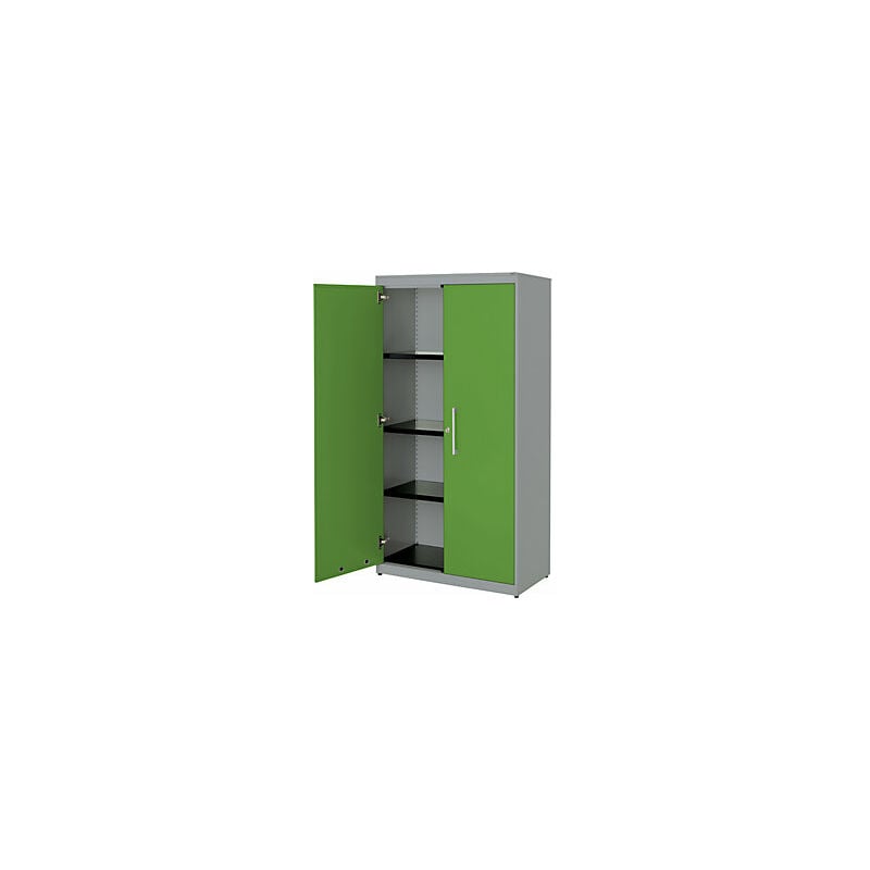 Armadio con ante a battente, alt. x largh. 1516 x 800 mm, pannello in acciaio, 3 ripiani, alluminio brillante / verde limone / alluminio brillante. Fornitura = montato. Larghezza = 800 mm. Altezza = 1516 mm. Profondità = 432 mm. Colore corpo = alluminio brillante RAL 9006. Materiale = acciaio, verniciato a polvere. Tipo di prodotto = armadi con ante a battente. Tipo di porta = anta a battente. Colore porta = verde limone RAL 6018. Numero ante = 2 pz. Numero ripiani = 3 pz. Materiale ripiani = acciaio, verniciato a polvere. Colore ripiani = nero grafite RAL 9011. Portata per ripiano = 44 kg. Caratteristiche = con serratura. Serratura = serratura a cilindro girevole con chiusura a triplo chiavistello, 2 chiavi incluse. Numero file raccoglitori = 4 pz. Dotazione interna = 3 ripiani. Angolo di apertura delle porte = 120 °. Semplice spazio per raccoglitori, documenti e materiale da ufficio. Il modello classico tra gli armadi archivio. Design minimalista. Funzionalità pratica. Corpo: robusto