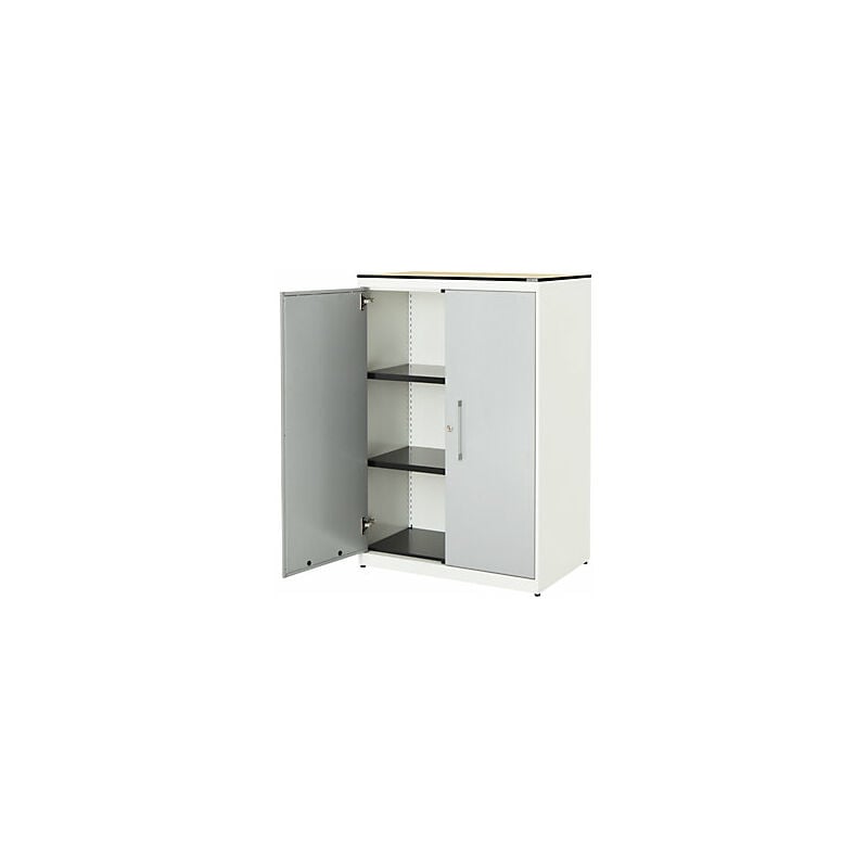 Armadio con ante a battente, alt. x largh. 1168 x 800 mm, piano in HPL con anima piena, 2 ripiani, bianco puro / alluminio brillante / acero. Fornitura = montato. Larghezza = 800 mm. Altezza = 1168 mm. Profondità = 432 mm. Colore corpo = bianco puro RAL 9010. Materiale = acciaio, verniciato a polvere. Tipo di prodotto = armadi con ante a battente. Tipo di porta = anta a battente. Colore porta = alluminio brillante RAL 9006. Numero ante = 2 pz. Numero ripiani = 2 pz. Materiale ripiani = acciaio, verniciato a polvere. Colore ripiani = nero grafite RAL 9011. Portata per ripiano = 44 kg. Caratteristiche = con serratura. Serratura = serratura a cilindro girevole con chiusura a triplo chiavistello, 2 chiavi incluse. Numero file raccoglitori = 3 pz. Dotazione interna = 2 ripiani. Angolo di apertura delle porte = 120 °. Semplice spazio per raccoglitori, documenti e materiale da ufficio. Il modello classico tra gli armadi archivio. Design minimalista. Funzionalità pratica. Corpo: robusto corpo